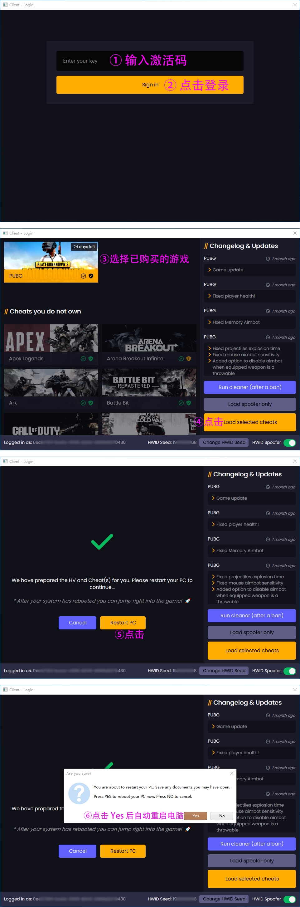 期间游戏闪退,重新进入即可,无需重新注入。除非电脑重启或按了卸载菜单